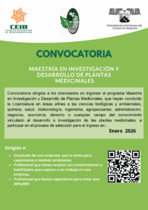 Convocatoria Maestría en Biotecnología -ingreso Enero 2026 Convocatoria Maestría en Biotecnología Ingreso Enero 2026Formulario de registro : https://forms.gle/GSoRb6e2MXpscAGG6 Informes | ceib@uaem.mx, mastermb@uaem,mx Archivos Descargables Convocatoria (pdf)
