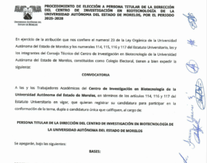 Convocatoria de elección de la persona titular de la Dirección del Centro de Investigación en Biotecnología